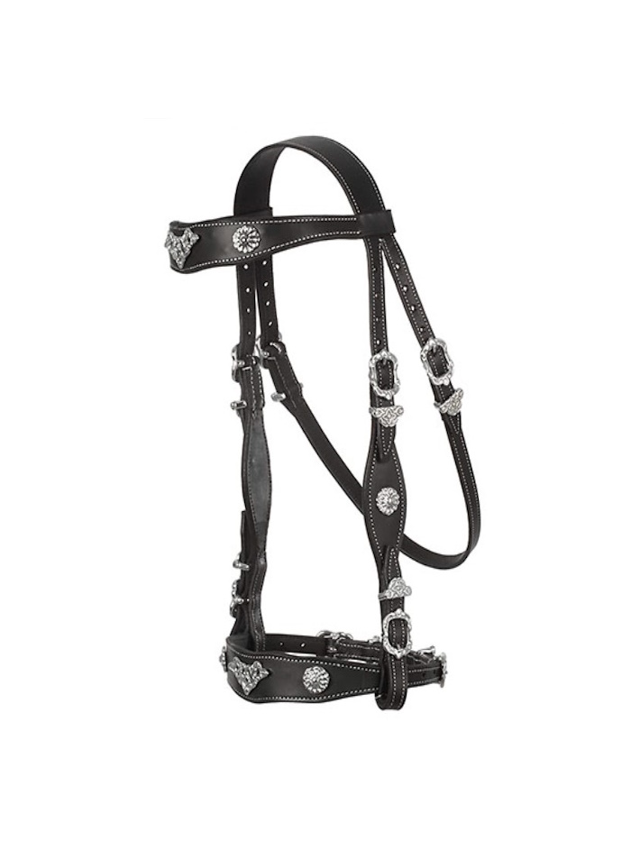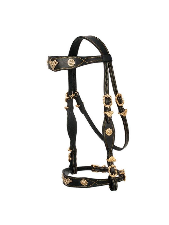 Cabeçada confecionada no estilo tradicional português com pele e ferragens de alta qualidade.
