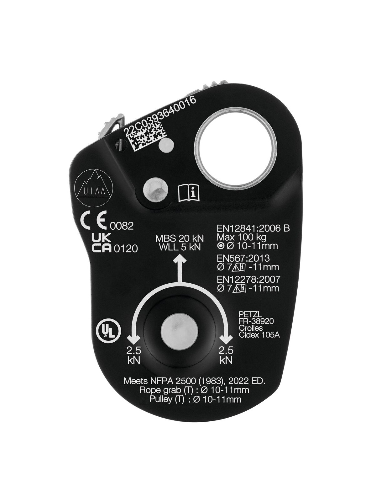 Certificações: CE EN 567, CE EN 12278, CE EN 12841 type B, NFPA 2500 Technical Use Pulley and Rope grab, XF 494: FZL-Z-Q 8.5/11, XF 494: FZL-H-Q 8.5/11