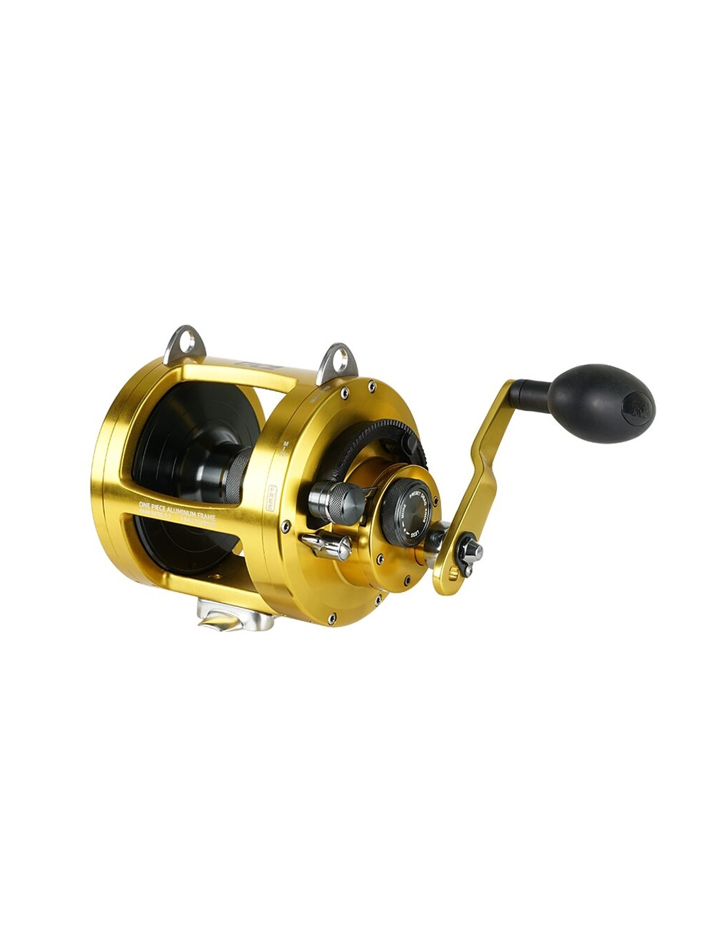 Fabricados em alumínio, os carretos TICATEAM™ são concebidos para a pesca oceânica de grandes peixes em água salgada. Com travão de alavanca, normalmente utilizado na pesca marítima de barco, especialmente para atum e tubarão, o TICATEAM™ possui 6 rolamentos de esferas blindados em aço inoxidável e 2 rolamentos de esferas com anti-reverso instantâneo. A estrutura em alumínio forjado e a manivela ajustável com botão garantem um recolhimento potente e resistente.